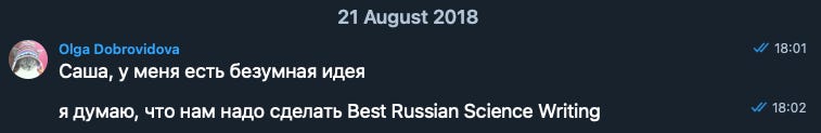 Это, конечно, эксперимент, потому что я пытаюсь понять, можно ли вокруг моих наблюдений за профессией (а я настаиваю, что научная журналистика — это профессия, даже когда со мной никто не спорит) выстроить какую-то дискуссию за пределами частных чатов в Telegram.